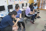 授業で活用できるようタブレット機器を使用した実技研修をパソコン室で行いました。プログラミング教育も来年度から導入されます。児童の思考力や表現力を高めるためにも、効果的にIT機器を活用し授業を行っていきたいと考えます。