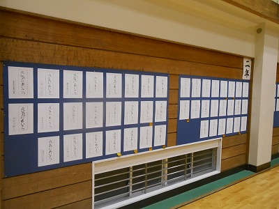本日から27日(金)の9:00~17:00に校内書き初め展が体育館で行われます。