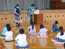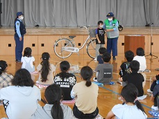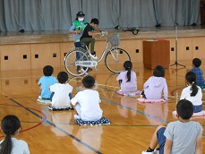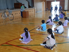 3・4年生と5・6年生は、自転車の乗り方や点検の仕方、手信号の出し方を学びました。