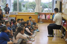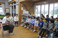 毎週水曜日は、読夢の会の皆さんに読み聞かせを行っていただいていますが、今回は大多喜高校の生徒さんが、1~3年生に読み聞かせをしてくださいました。生徒さん達は、読夢の会の皆さんから夏休みに読み聞かせの仕方を学んで来られたので、とっても上手に読んでくださいました。子ども達もお話の世界に入り込み、真剣な眼差しでした。心温まる高校生の皆さんとのふれあいでした。