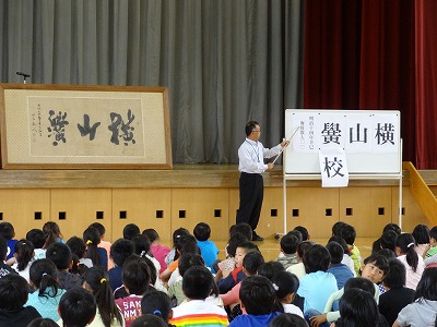 勝海舟が書いたとされる「横山校」のがく入りの文字は