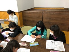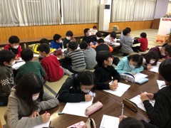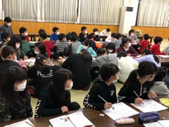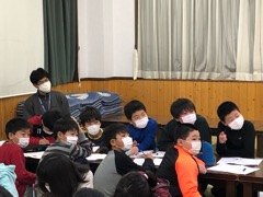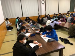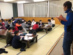 夕食の後はスキー学校の先生からスキーの歴史や雪国の暮らしについて教えていただきました。みんな熱心にメモを取りながら聞いていました。さすがです。