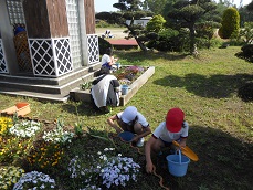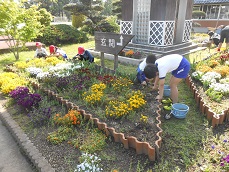 栽培委員会は、花壇やプランターの草花の管理、校内の花壇の除草などを行っています。