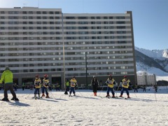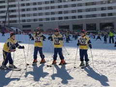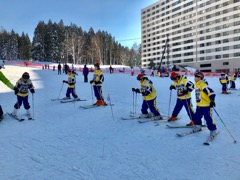 昨日まで降っていた雪が今日はやみ、青空と太陽の光に応援されて、みんな頑張っています‼️