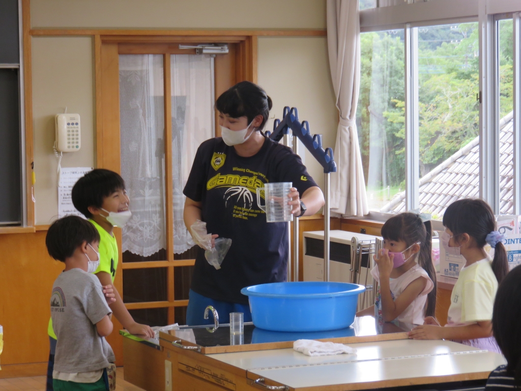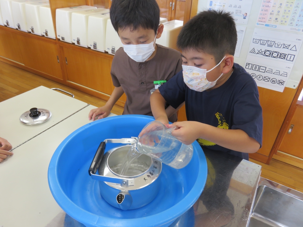 意外と1L分の水の量が多いこと、それでも鍋やヤカンに入れる量では少なめであることなど、身の回りの新しい発見に、子どもたちは驚いていました。