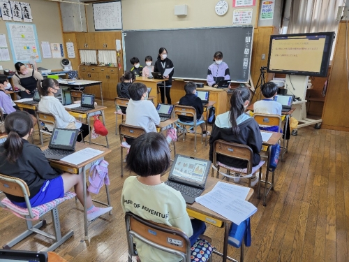 5年生が西小と合同で行っている「大多喜町活性化プロジェクト」の学習。