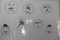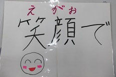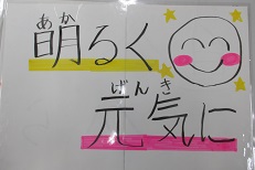 毎月2のつく日を「あいさ2(ツー)の日」として、挨拶を推奨しています。この日は、運営委員が登校してくる友達に、「笑顔で」「明るく元気に」等の手作りのプラカードを掲げ挨拶しています。これは、子ども達が委員会活動の時間に話し合って決めた活動です。手作りプラカードは、どれも丁寧に大多喜小学校があいさつでいっぱいになるようにと願って一生懸命に作りました。とっても素晴らしい活動です。気持ちの良い挨拶が、心と心をつなぐ大多喜小学校になっています。