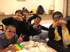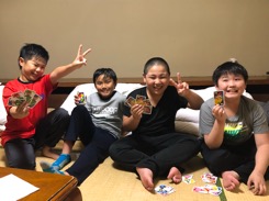 同じ部屋の友達とトランプをしたり、おしゃべりしたり、楽しく過ごしています。
