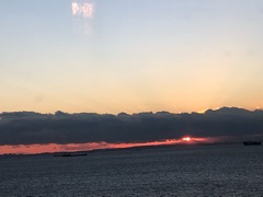 バスの中では帰りの会を行っています。3日間の思い出を一人一人発表しています。夕日が子ども達の最後の姿を見届けてくれています。