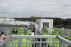 川やダムの水をきれいで安全な水にする浄水場のしくみを見学しました。浄水場には1日平均3万㎥(25mプール100杯分)の水が送られてくること、水をきれいにするまで10時間かかること、24時間体制で浄水場が動いていることなどたくさん学びました。安心して水が飲めることに感謝し、水の大切さに気づきました。みんな熱心に説明を聞いたり、施設を見学したりしていました。