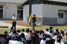 地震を想定した避難訓練が行われ、児童たちは真剣な表情で安全な行動を確認しました。放送の指示をよく聞き、落ち着いて避難する姿が見られました。