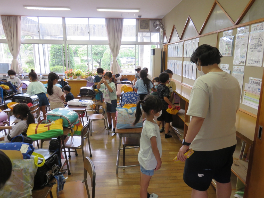 たくさんの荷物を持って帰りました。夏休みが始まる雰囲気が、各学級からあふれてきました。