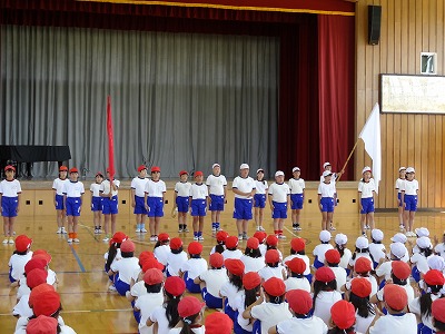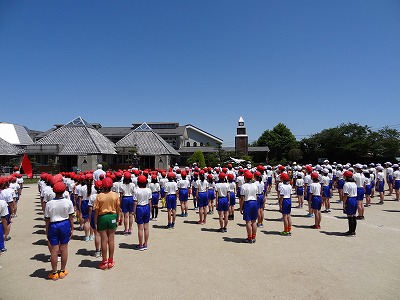 赤組白組、気合の入った結団式を行い、運動会に向けて士気を高めることができました。