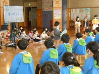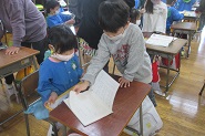 1年生がみつば保育園の年長さん達を招待し、「もうすぐ1年生の会」を行いました。楽しい小学校生活の様子を発表したり、教室に一緒に行って机の中の教科書や学習道具の説明をしたり、校舎内を案内したり、1年生がお兄さんとお姉さんになって、張り切って活動してくれました。その姿はとても微笑ましく、頼もしかったです。年長の皆さん、入学を楽しみに待っていますね。