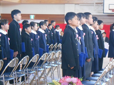 天気にも恵まれ、春を感じさせる気候のもと、卒業生46名全員が出席し、笑顔あり、涙ありの卒業式となりました。