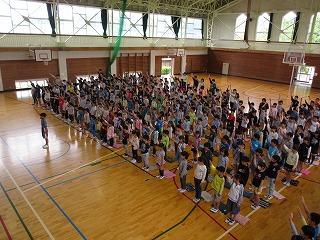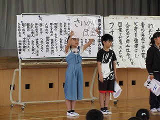 誓いの言葉を復唱し,青少年赤十字の歌を全校で歌い,JRCの一員となりました。