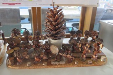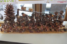 中野駅前の無料休憩所「よってけ家」の方から、プレゼントをいただきました。どんぐりで作ったかわいいリス達が、トランペットやバイオリンなどを奏でるオーケストラ部隊です。細部までとても丁寧に仕上げられていて、作られた方の心の温かさを感じ、見ていると気持ちがほっこりしてきます。職員玄関に展示しています。ぜひ、ご覧ください。