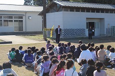 火災を想定した避難訓練を実施しました。児童たちは落ち着いて放送を聞き、ハンカチで鼻と口を押えながら真剣に避難することができました。