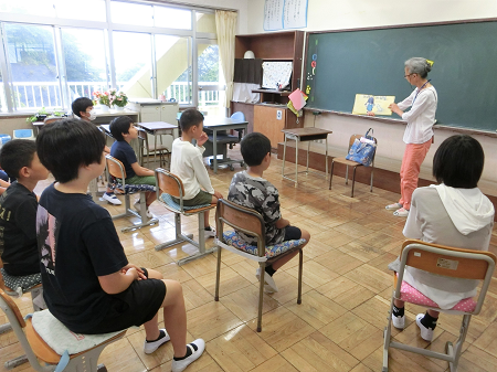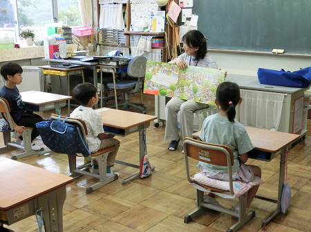 」の方が来校し、朝の「読み聞かせ」が始まりました。本を朗読してくれたり、紙芝居を聞かせてくれたりしました。子ども達は、真剣なまなざしで聞いていました。