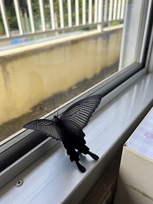 子ども達が登校する前の教室でクロアゲハは元気に羽ばたいていました