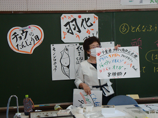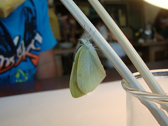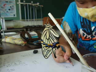 3・4年生の理科で、照川由美子先生を講師にお招きし「蝶の羽化」の授業を行いました。蝶の体のつくりやオス・メスの見分け方を教えていただきました。モンシロチョウのさなぎを観察しながら羽化していく様子を真剣に観察し、スケッチもしました。アゲハチョウの羽化も観察できました。