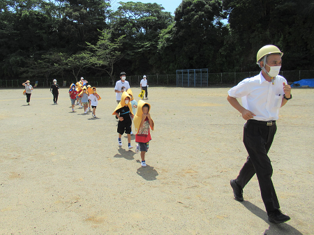 9月1日(木)は防災の日でもあり、3校時に地震を想定した避難訓練を行いました。グラウンドに避難した後、津波警報を想定して校舎3階の各教室へ避難するところまで経験しました。児童一人一人が、「お・か・し・も」を意識し、緊張感をもって真剣に行動していました。