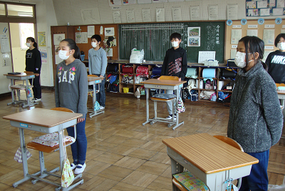 11年前の3月11日14時46分に東日本大震災が発生しました。大地震による大津波で多くの人が命を落とし、行方不明者も多数に上りました。津波被害だけでなく、原子力発電所の事故により、いまだ自宅に帰宅できない人もいます。学校では、この地震により亡くなった方や行方不明者の方々のご冥福を祈り、全校児童・職員で黙とうを捧げました。津波災害の恐ろしさを再度認識し、家庭でも防災意識を高めていきたいものです。