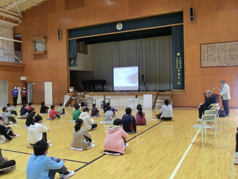 12月4日に授業参観と家庭教育学級が行われました。家庭教育学級の演題は「見る・知る・考える私たちの豊浜講座」でした。千葉県建築士会夷隅支部エコミュージアム推進部会の方々を講師にお招きし,地元勝浦にある県内最古の銭湯「松の湯」について学習しました。