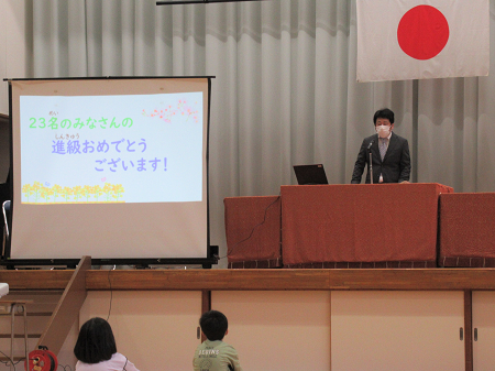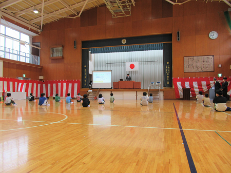 着任式後に、1学期の始業式を行いました。校長先生から、「進級おめでとうございます。今年も楽しい行事がたくさんあります。友達に、優しい気持ちをもちましょう。たくさん本を読みましょう。」とお話がありました。その後、担任等の発表があり、各学級で学級開きがありました。