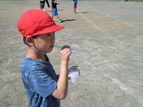 ストロー等の道具を使って、グラウンドでシャボン玉を飛ばして遊びました。