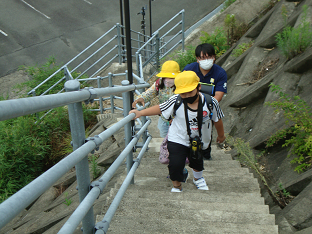 豊浜小学校の学区は、海に近く津波の影響を受けやすい場所が多くあります。下校時に避難訓練を行い、児童は地域の高台の避難場所を確認しました。