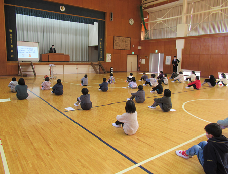 2月1日(水)に、全校集会を行いました。校長先生から「どうして勉強をしないといけないのか。」と投げかけられ、「①生活するのに必要。②生活をより良くする。③人からだまされないようにする。」そのために、「考える力や伝える力をつけましょう。」などのお話がありました。子ども達は、いつものように真剣な態度でお話を聞くことができました。