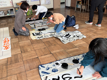 12月19日(月)に、外部講師の氏原敬子先生のご指導をいただき、書き初めの練習をしました。先生は、一人一人の作品をよく見てくださり、とてもわかり易く教えてくださいました。子ども達は、先生の熱心さに応えるように集中して取り組んでいました。