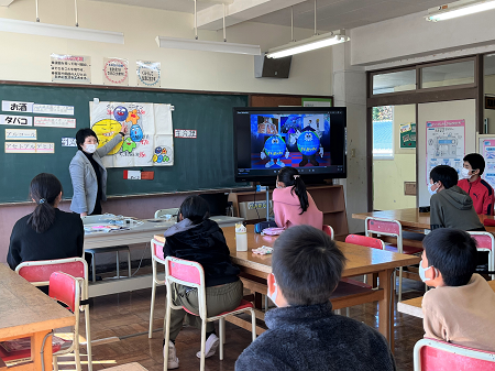 12月15日(木)の4校時に外房地区少年センター警察官が来校し、5・6年生が、薬物乱用防止教室に参加しました。薬物乱用の恐ろしさをお話や実験、DVDの視聴により、学習しました。また、ロールプレイングを行い、断り方のイメージトレーニングをしました。