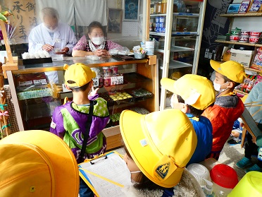 1・2年生で、玉子屋さんに見学に行きました。お店の人たちが子供たち