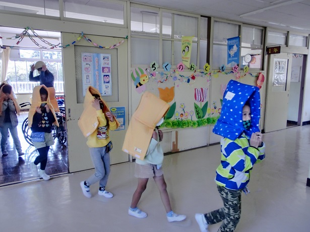 1年生は入学してからは初めての避難訓練でしたが、放送をしっかりと聞いて机の下にもぐり、