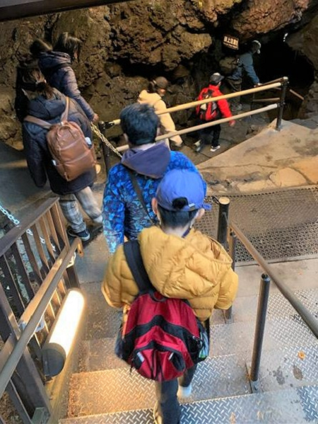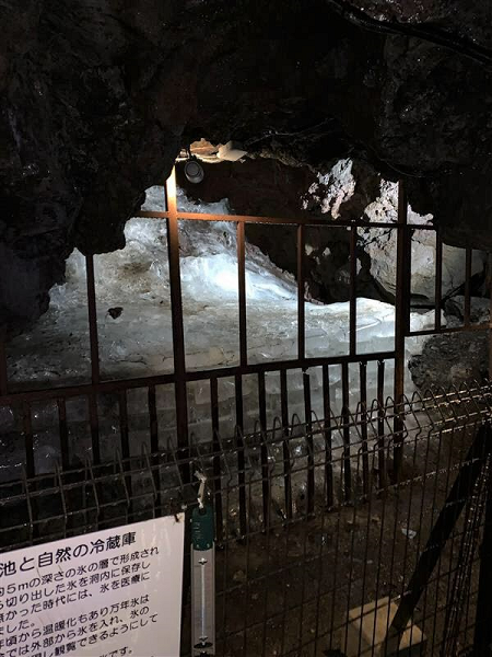 2日目の午前中は、天然記念物の鳴沢氷穴を見学しました。富士山麓の代表的な溶岩洞窟で、平均気温は3度だそうです。