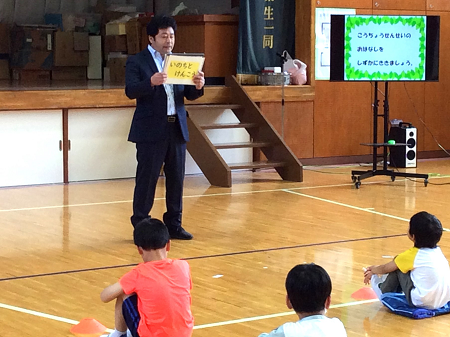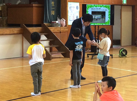 5月17日(火)に、JRC登録式が行われ、3人の1年生が加わりました。26名の全校児童が、「ちかい」の言葉を元気に読み上げ、学校生活における活動が、JRC活動につながっていることを改めて知りました。加えて豊浜小学校の長きにわたるJRC活動の功績に対して、感謝状をいただいたことが紹介されました。