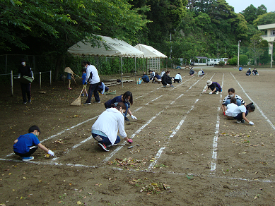 奉仕作業では、来週の運動会に向けて、グラウンドがきれいに整備されました。