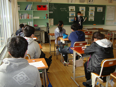 6年生が先日の勝浦中学校入学説明会に続き、体験事業に参加しました。市内5校の小学校から来年度入学する81名が集まり、最初に豊浜小児童は、上野小児童と一緒に英語の授業を体験しました。その後、全児童が体育館に集まり、体動かし運動を行い他校との交流を深めました。4月の入学に向け、中学校の雰囲気が体験できたと思います。