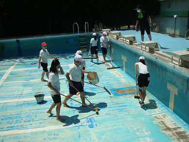 行いました。みんなで協力してプールが見違えるほどきれいになりました。