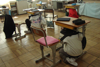 業間の時間に、ワンポイント避難訓練(地震)を行いました。業間の時間には、グラウンドではサッカーや縄跳び、遊具を使って遊んでいる姿が見られ、教室でもゆっくり過ごしている児童がいます。突然の緊急地震速報(訓練)に児童は素早く行動し、一次避難行動をとることが出来ました。今後、いつどこで大きな地震が発生するかわかりません。迅速に判断し、物が落ちてこない場所や移動してこない場所、倒れてこない場所への避難ができるようになってほしいと思います。