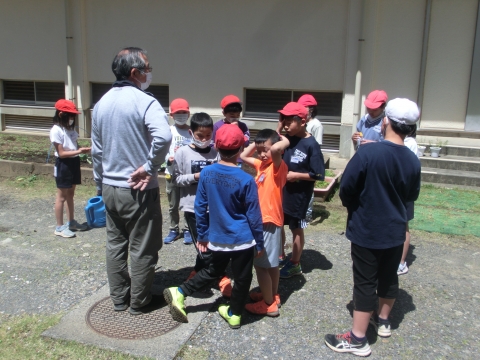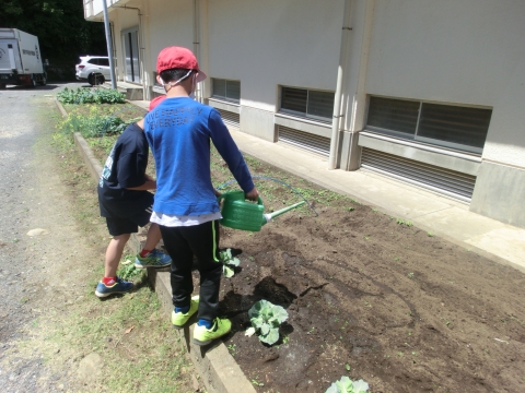 先週植えたキャベツの水やりも、毎朝忘れずに頑張っている3年生です。