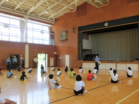 6月29日(水)に、暑い中を勝浦警察署、勝浦市交通安全協会の方が来校し、交通安全教室が開かれました。夏に向けて交通量が多くなり、交通事故の危険が高まる中、交通ルールを守って安全に生活できるように、一人一人が真剣に取り組みました。