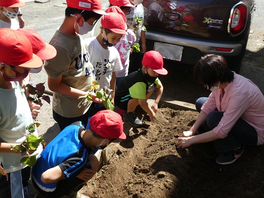 1,2年生がサツマイモを植えました。