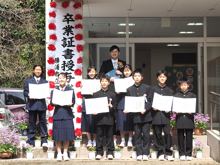 3月17日(金)に、「第115回 卒業証書授与式」が挙行され、8人の明るく優しさあふれる6年生が、ご来賓やご家族の皆様、在校生や職員からの心温まる祝福を受け、豊浜小学校を巣立っていきました。勝浦中学校で多くの仲間と出会い、さらなる活躍を楽しみにしています。