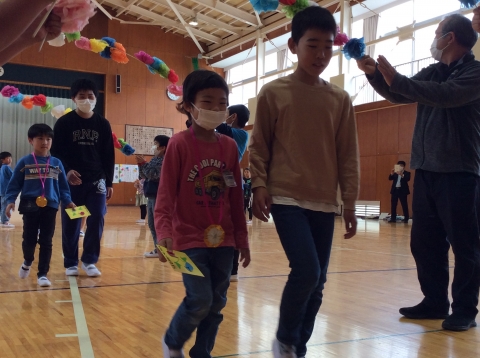 1年生の入学をお祝いし、全校児童で「入学おめでとう集会」を行いました。運営委員会児童を中心に、5・6年生が一致団結して会を運営しました。