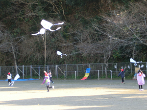 1年生の生活科で「凧づくり」をしました。児童は思い思いに凧に絵を描き、完成した凧を校庭で思いっきり飛ばしました。元気に走り回り楽しそうな姿が印象的でした