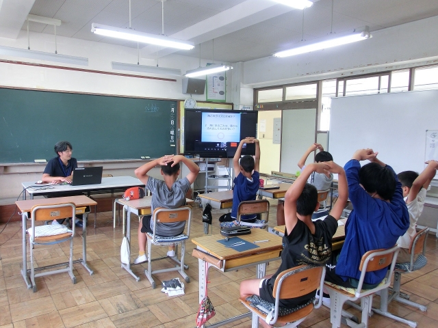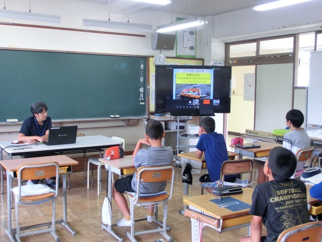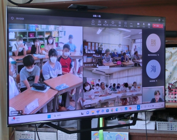 海の博物館の先生を講師に迎え、5・6年生が海洋学習を行いました。今年度は総野小、興津小もオンラインで参加しました。パワーポイントを使い、勝浦沖を流れる潮の事や磯で見られる生物、マイクロプラスチックが環境に与える影響についてなど、わかりやすく説明してくだいました。「海の生き物や環境を大切にしたい」という思いをもつとともに、「7月4日に予定されている海浜生物採集では、レアな生き物を採りたいです!」と意気込んでいました。