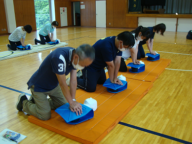 心臓マッサージや人工呼吸、AEDの実技練習を行いました。